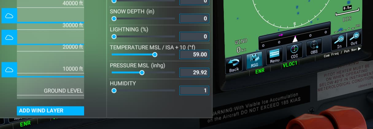 If i move the wind layer in few flouds up to the max height, my plane then reports 5 knots. on the ground it reports zero but once I am in the air, its saying 5 knots.