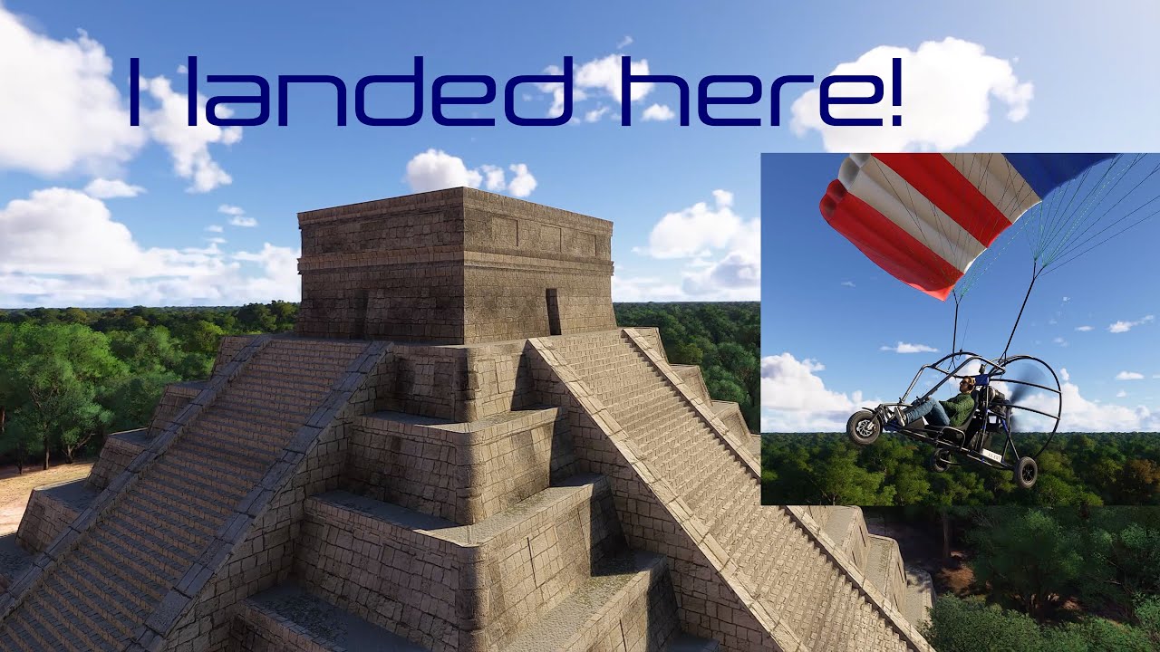 Timestamps: Introduction and Taxi 0:26 Departure 4:28 Landing Attempt No. 1 11:02 Landing Attempt No. 2 13:57 Temple of the Bearded Man 15:35 The Great Ballcourt 17:53 Temple of the Jaguars 19:06 Temple of Venus 20:04 Kukulkan Pyramid 21:08 Pyramid of Kukulkan Facts 22:54 Temple of the Warriors 24:08 Temple of the Thousand Columns 25:36 Return Flight 26:20
