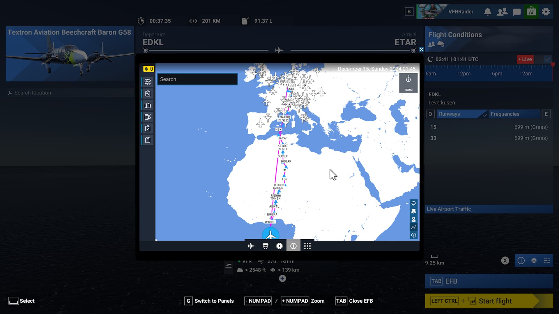 When selecting routing on the EFB, it routed me via Africa for an internal German flight.