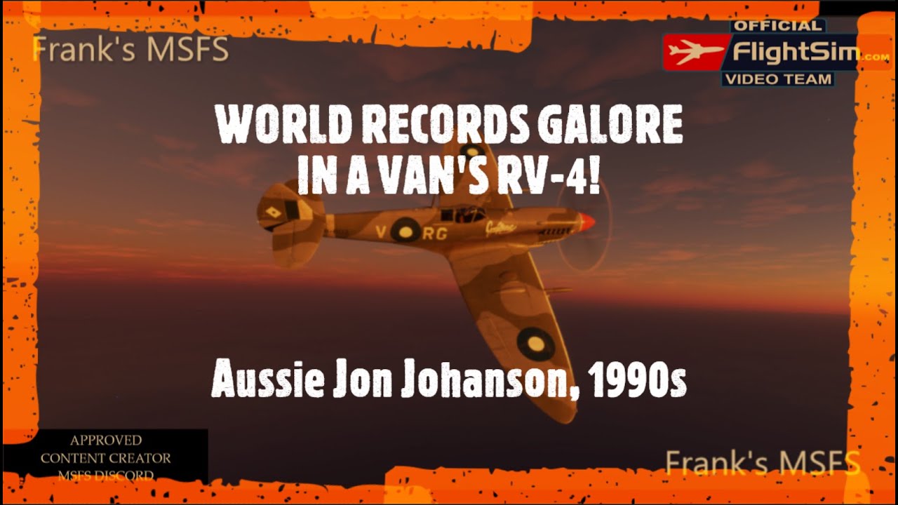In the 1990s an Aussie country boy, Jon Johanson, dreamed of becoming a pilot & visiting Oshkosh. He obtained his PPL, CPL & ATPL, built a Van’s RV-4 & flew it to Oshkosh, & around the world - twice. Along with other flights in his RV-4 he achieved over 30 world records. In this video we follow his journey in MSFS from Australia to Oshkosh. Hope you enjoy. Cheers.