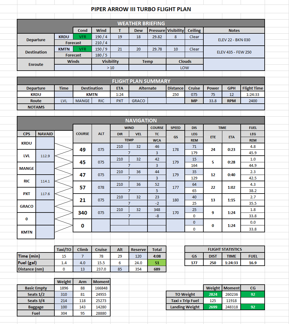 Leg #5: Raleigh-Durham International KRDU - Martin State KMTN.