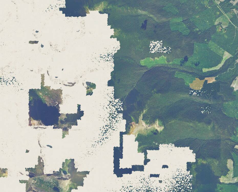 Not sure I understand what youâre showing. They both look like acceptable satellite data to make textures from, and look like Taiga spruce boreal forest, with the left being snow covered in winter and the right in the summer.