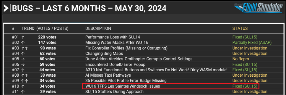 - The new windsocks are red only and too small. The ones that came before WU16 should have been used.