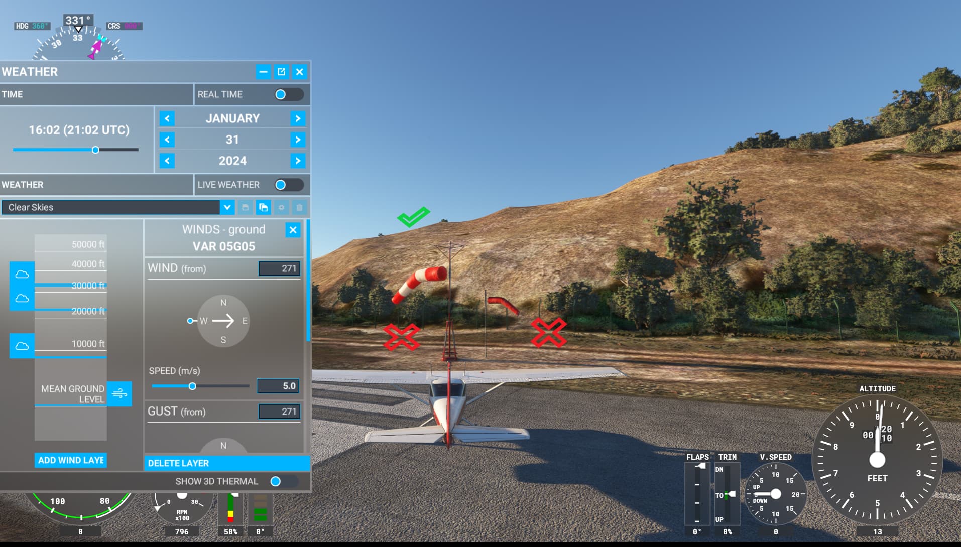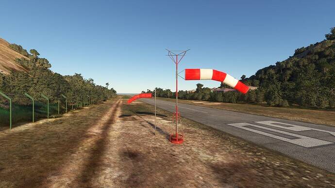 After WU16, 2 windsocks at the incorrect location (the white/red one is pointing to the wrong direction, see wind direction). The windsock should be located on the hill where the green tick is: