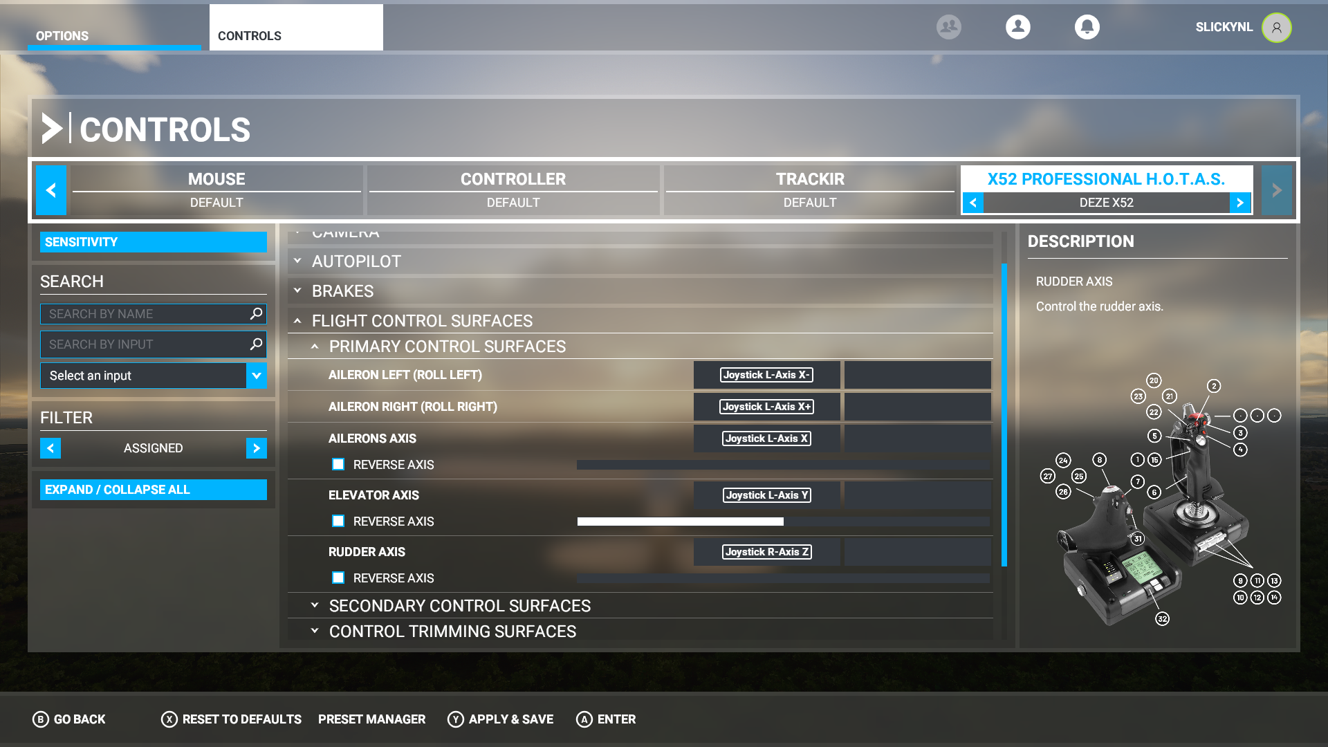joystic axis to go up down left right and rudder