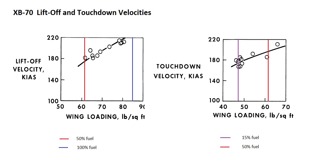 XB-70 takeoff and touch down velocities