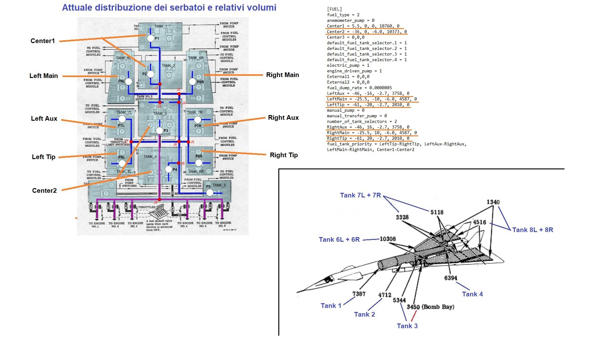 XB-70 fuel tanks volume, weight and position