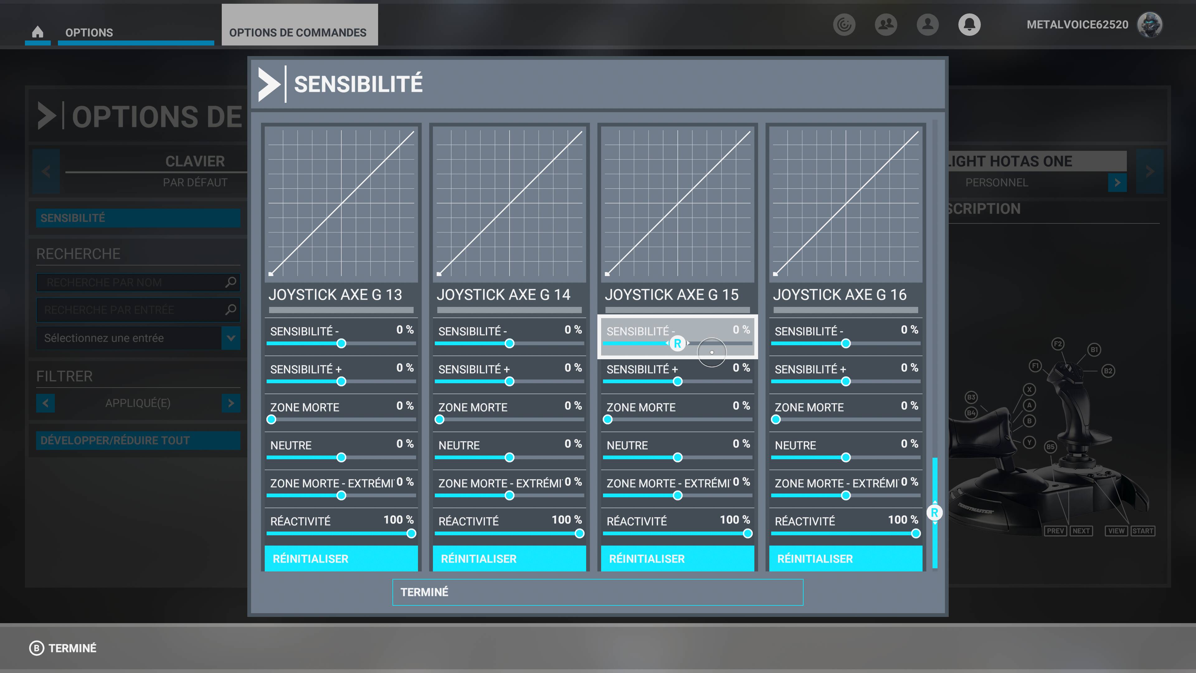 - On the earlier version, the sensitivity settings for HOTAS One showed 16 axis.