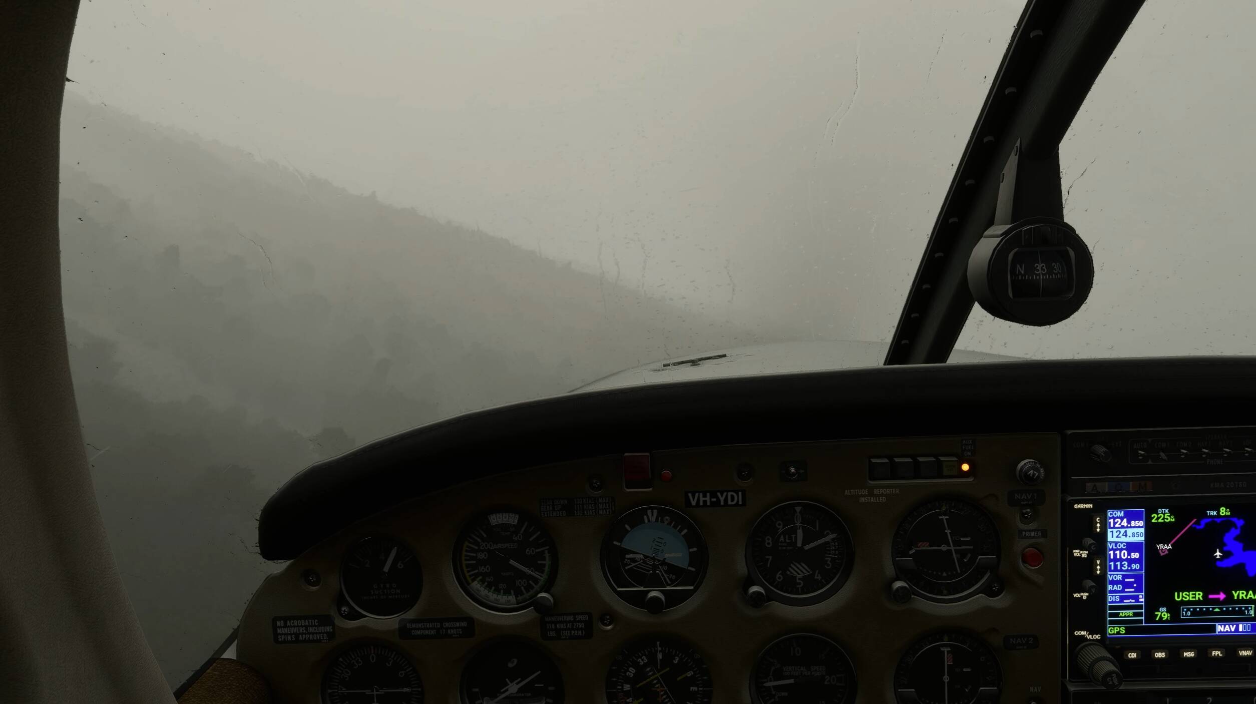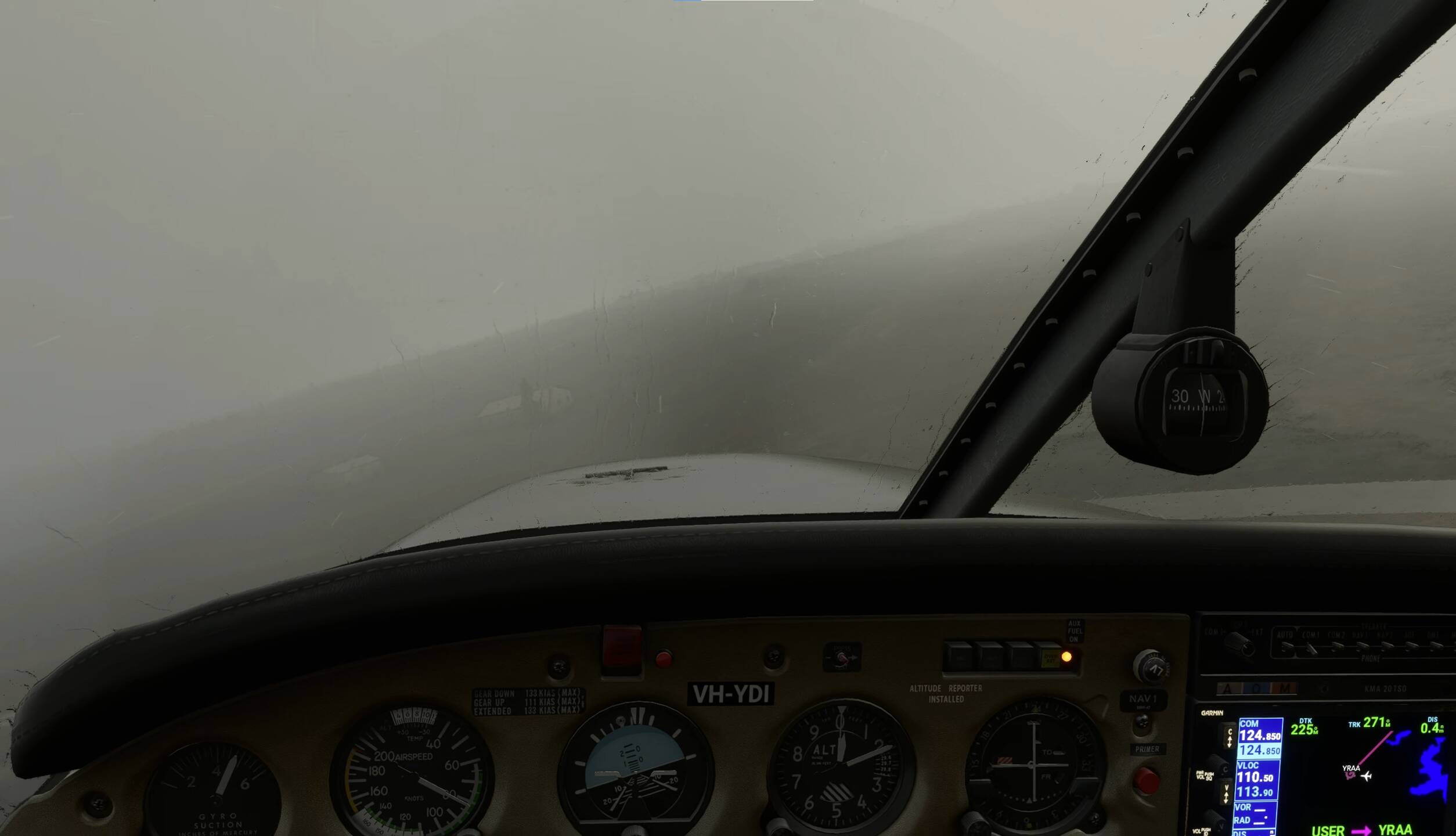 This flight was intentionally flying in weather I’d never take my real plane in. MSFS was just absolutely amazing during this flight.The transition of weather from highish clouds to IFR was so seamless and believable. At one point I could see rain almost surrounding me and see the direction of the wind based on it. Just perfect. I wish I recovered the whole flight.