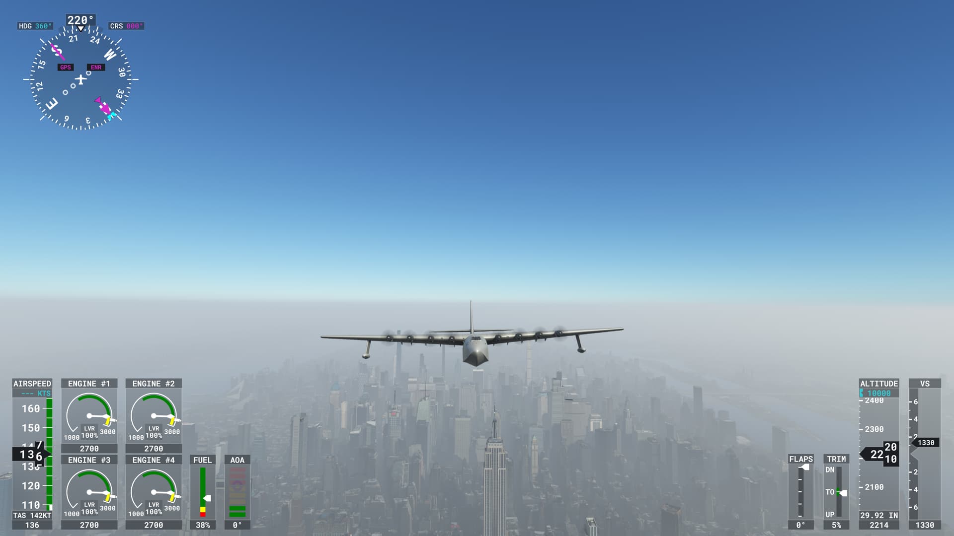 Played during my lunch hour. Loaded up the wright flyer at my home airport but tropical storm Nicole just pushed me sideways. Then tried the Jenny, still too windy. Spawned in the spruce goose just to see the size, wowza.