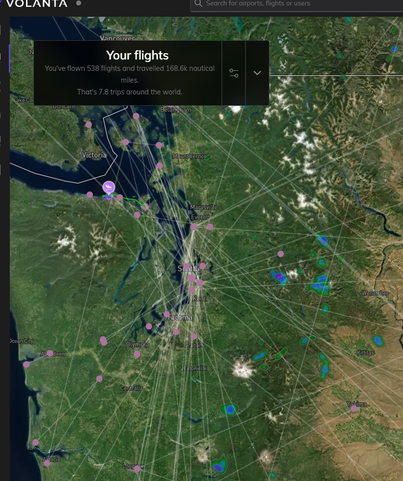 So I checked my Volanta flight logs and was pretty easy to see where I love to fly - the State of Washington (where I live):