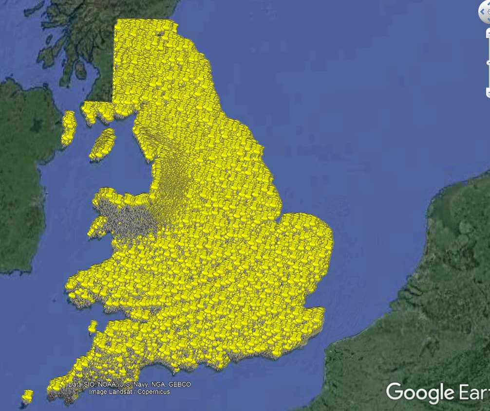 I managed to open the KML file but it has brought my 3090 to its knees trying to render it - What I will say is there is a good amount of pigeons: